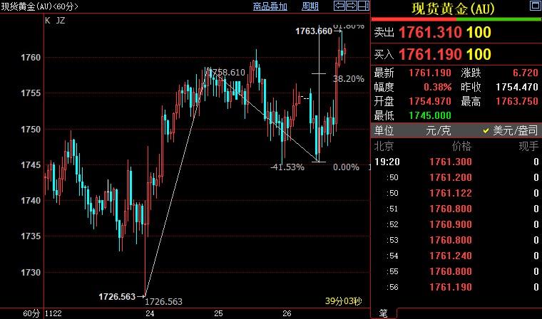 现货黄金上看1770美元